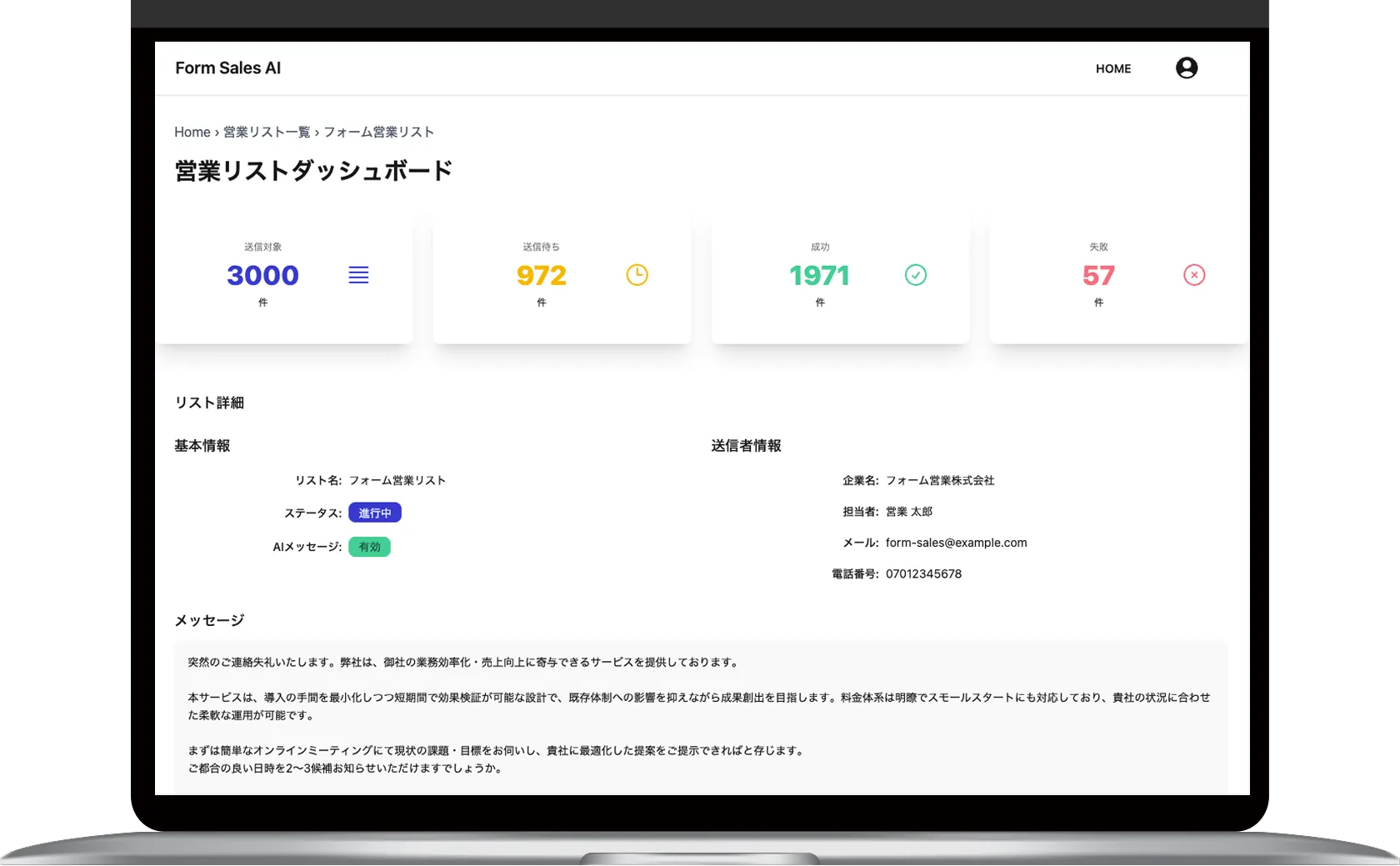 各企業のホームページやプレスリリースをAIが自動解析して適した問合せ文を作成して送信